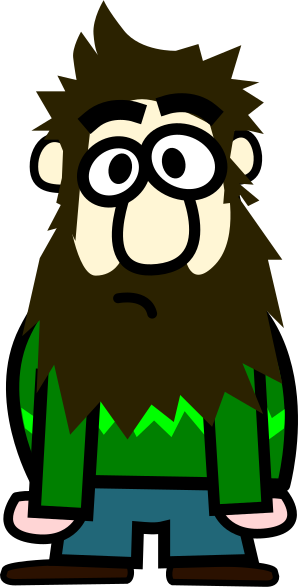 This features a cartoon character with a beard and glasses, wearing a green shirt. He appears to be standing in front of a wall or background, possibly posing for the picture. His facial expression seems somewhat displeased or serious, adding an element of personality to the character. The overall design of the cartoon is simple yet effective, with the character's features and clothing clearly visible.