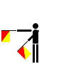 This features a person holding a red and yellow flag, possibly in the process of waving it. The individual is standing on a flat surface with their body facing towards the camera. The flag appears to be held at an angle, adding depth to the scene. The overall composition of the image suggests that this could be a cartoon or a graphic representation of someone holding a flag.