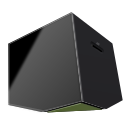 This features a black box with a handle on top, sitting in front of a white background. The box appears to be square-shaped and has a logo on it, indicating that it may be related to a product or service. The contrast between the black color of the box and the white background creates a visually striking image.