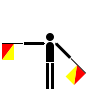 This features a person holding a red and yellow flag, possibly in the process of waving it. This individual is standing on a field with their arms outstretched, giving the impression that they are trying to fly the flag. The scene appears to be a simple illustration or cartoon-like representation of this action.