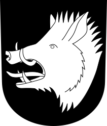 This features a black and white drawing of an open mouthed pig with tusks. The pig's teeth are bared, giving it a fierce appearance. The drawing is set against a dark background that contrasts the pig's sharp teeth and furrowed brow. This unique design could be used as a logo or symbol for various purposes, such as representing a company or an organization related to agriculture, food, or even artistic expression.