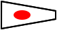 This features a red and white flag with a circle in the middle. The flag is shaped like a sail, giving it an old-fashioned appearance. The red circle has a pattern of dots surrounding it, adding to its unique design. This flag could be used as a signal flag or simply as a decorative piece for display.