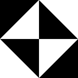 This features a black and white square with a large, white triangle in the center. This triangle is surrounded by smaller triangles that create an intricate pattern throughout the entire square. The overall design gives off a sense of depth and complexity, making it visually interesting.