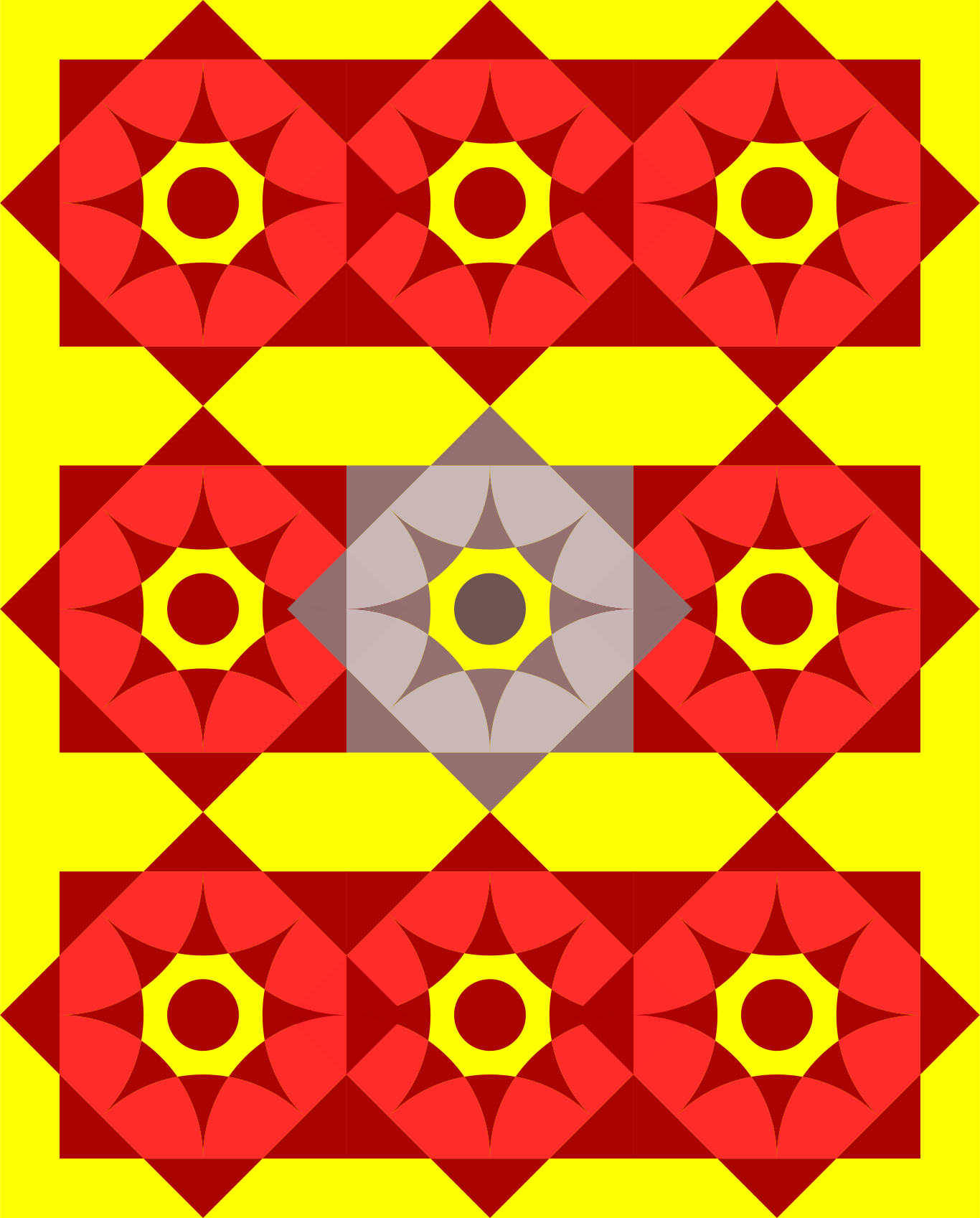 This features a large, colorful geometric pattern made up of many small squares. Each square is filled with different colors and shapes, creating an intricate and visually appealing design. The pattern appears to be drawn in InkScape, which adds to its artistic quality. The various colors used in the pattern create a vibrant and lively atmosphere, making it an attractive piece of artwork or decoration.