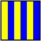 This features a blue and yellow striped flag, which is reminiscent of the signal flag golf. This colorful pattern creates an eye-catching design that stands out against its background. The flag's vibrant colors make it easy to spot and identify, making it suitable for various purposes such as sports events or promotional materials.