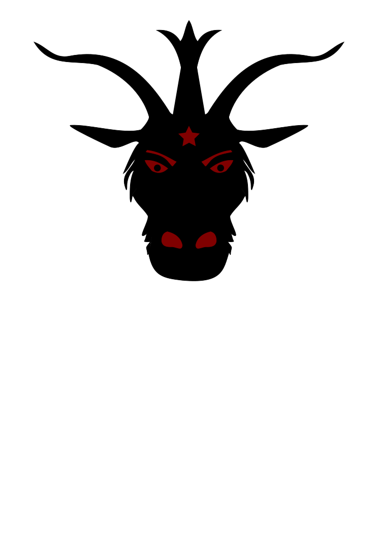 This features a devil head, possibly inspired by an occultism book. It is prominently displayed on the left side of the picture with its horns and eyes clearly visible. The devil's face appears to be angry or menacing, adding a sense of intensity to the scene. This unique design element creates a striking contrast against the rest of the image, which seems to be a plain white background.
