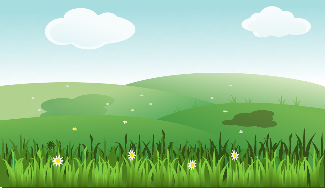This features a beautiful landscape with lush green grass and a hill in the background. There are several daisies scattered throughout the scene, adding to its natural beauty. The clouds in the sky create a serene atmosphere, making it an ideal setting for relaxation or contemplation. This illustration captures the essence of nature's tranquility and offers a peaceful escape from the hustle and bustle of everyday life.