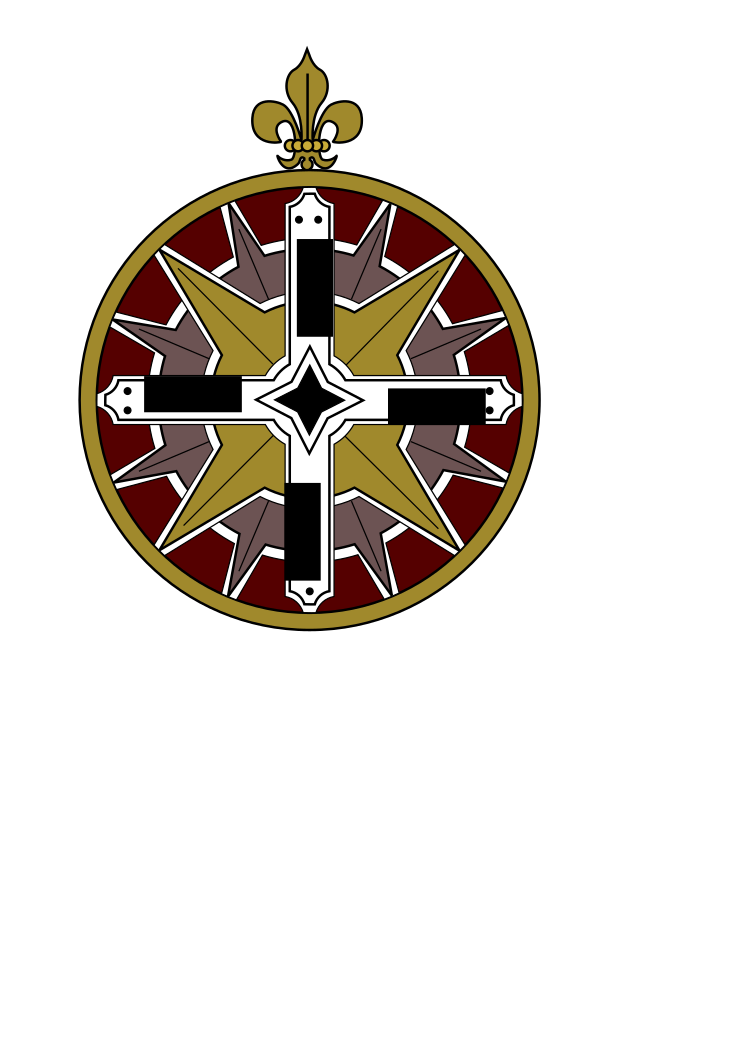 This features a compass with a fleur de lis on top, which is a decorative emblem. The compass itself is circular in shape and has a gold color to it. It appears to be an ornate design, possibly used as a symbol or decoration. The fleur de lis adds a touch of elegance and sophistication to the overall appearance of the compass.