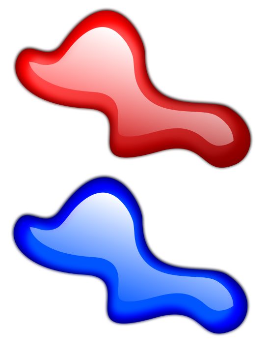This features two blue and red shapes, each with a unique design. The blue shape is located on the left side of the image, while the red shape is positioned towards the right. These shapes are likely part of an artistic or decorative project, as they appear to be made from liquid or glossy materials. Their vibrant colors and distinctive designs make them visually appealing and eye-catching.