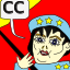 This features a cartoon character with a blue hat and stars on it. This character appears to be wearing makeup, including lipstick, and is giving the impression of being a woman. The character has its mouth open as if speaking or making an exaggerated gesture. The overall appearance of the character suggests that it might be from a comic strip or animated show.
