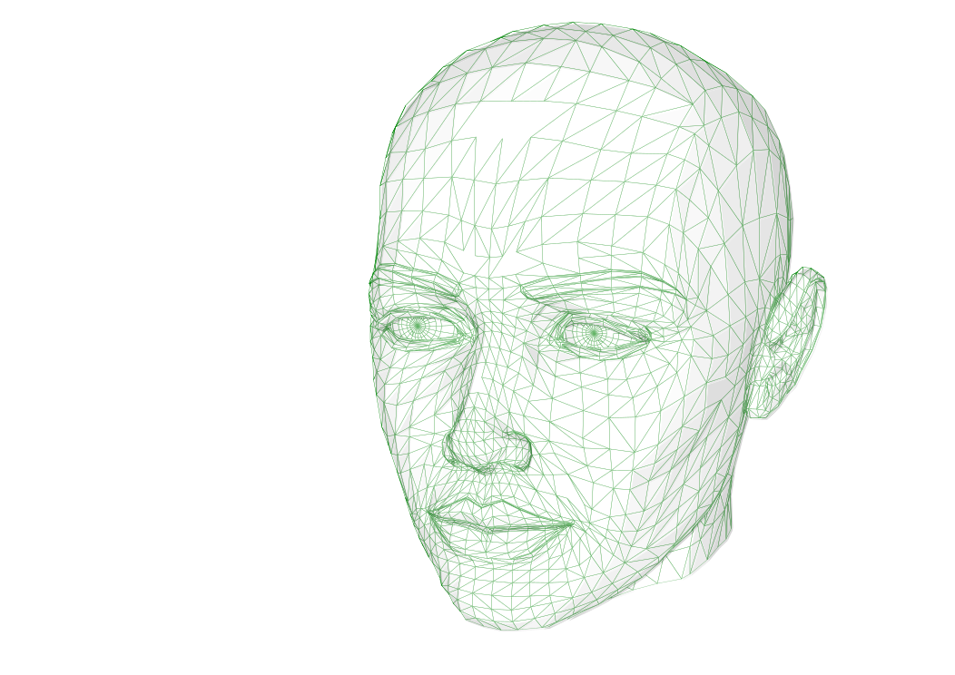 This is a close-up of a woman's face, with her eyes and mouth clearly visible. She has a bold head shape, which gives the impression that she might be wearing a hat or have an unconventional hairstyle. The color of her skin appears to be green, possibly due to lighting conditions or artistic choice. The image is a 3D human render, showcasing the intricate details and textures of the woman's face.